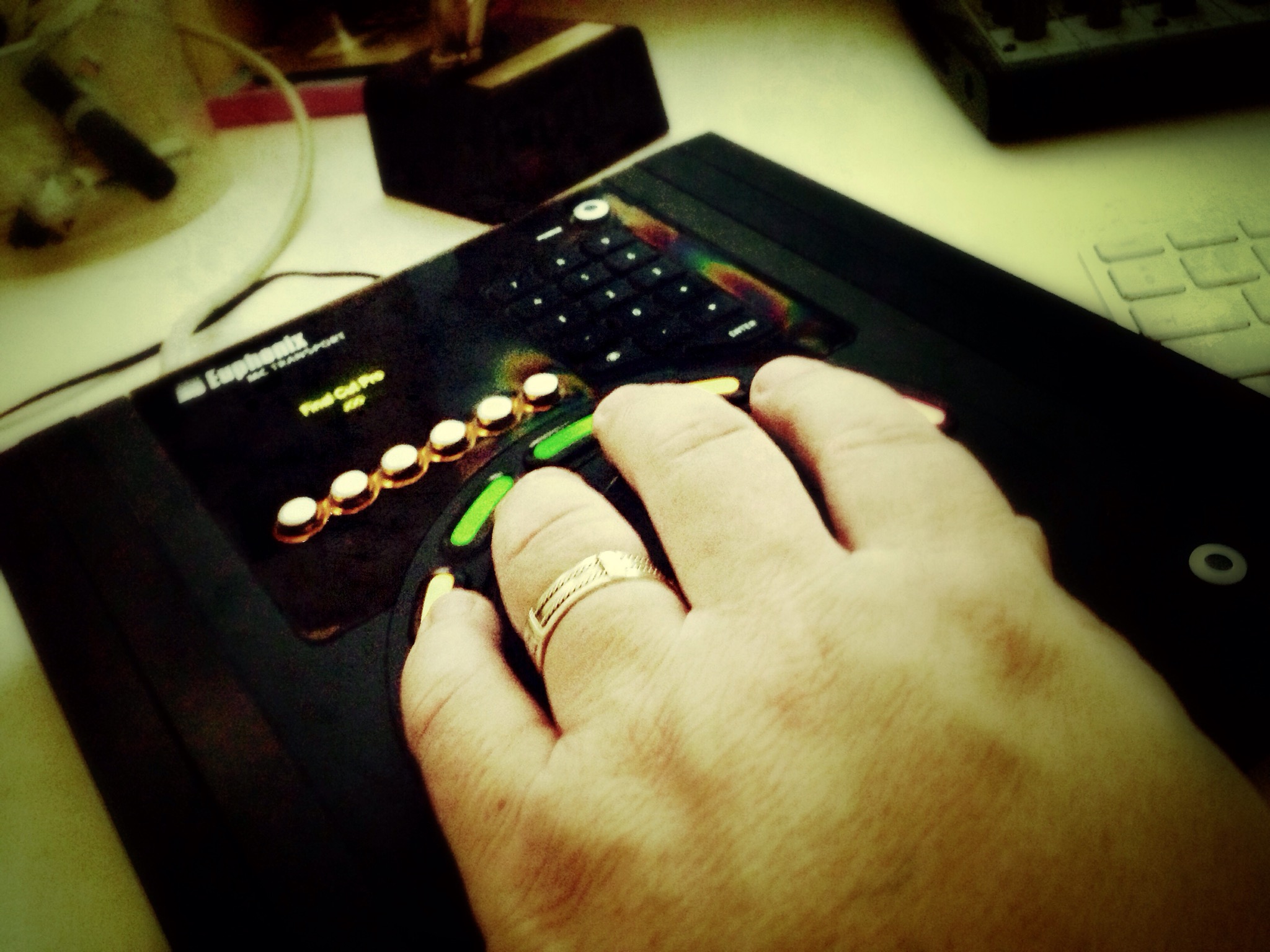 This is the Euphonix Transport Controller. Now owned by Avid, it’s an amazing piece of kit. Completely programmable multi-function buttons, jog wheel and shuttle wheel. I programmed about 90% of all the keyboard shortcuts I use ever day into the various buttons on the controller. J,K,L, delete, shift delete, go to end edit, go to end program and vice versa, mark in, mark out, clear in and out, save, render audio, render video, render all, zoom and a whole bunch more. It’s easily programmable and setting can be saved if you work on more than one controller or if like me you take it to every edit suite you work on and load the settings. It does require a software driver download and Avid are very good at keeping it updated for the newer OS version apple brings out every year. I love the old school edit controller action. It reminds me of from whence I came – tape based editing systems. Yes I know, old!